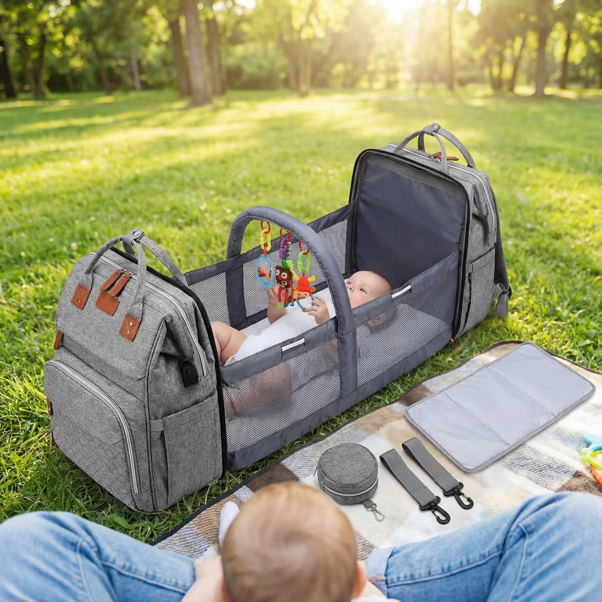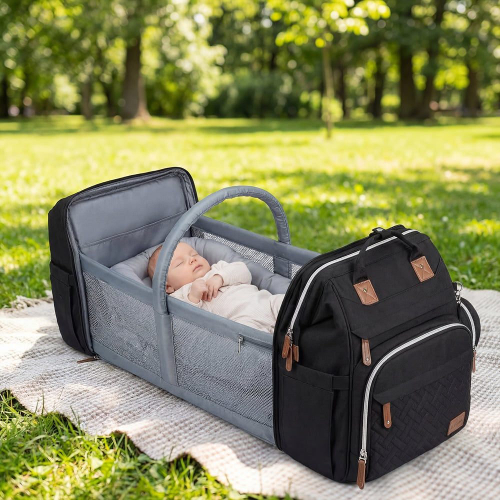 Between bottles, diapers, toys, and naps, life on the go can be overwhelming. The Portable Crib Backpack is your all-in-one solution a diaper bag, a portable crib, and a protected space for diaper changes, all in one backpack. Set up in seconds, store everything you need, and keep your baby safe and comfortable, no matter where the day takes you.